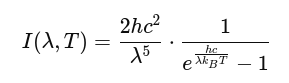 I(λ,T): Intensity of radiation at wavelength λ and temperature T,