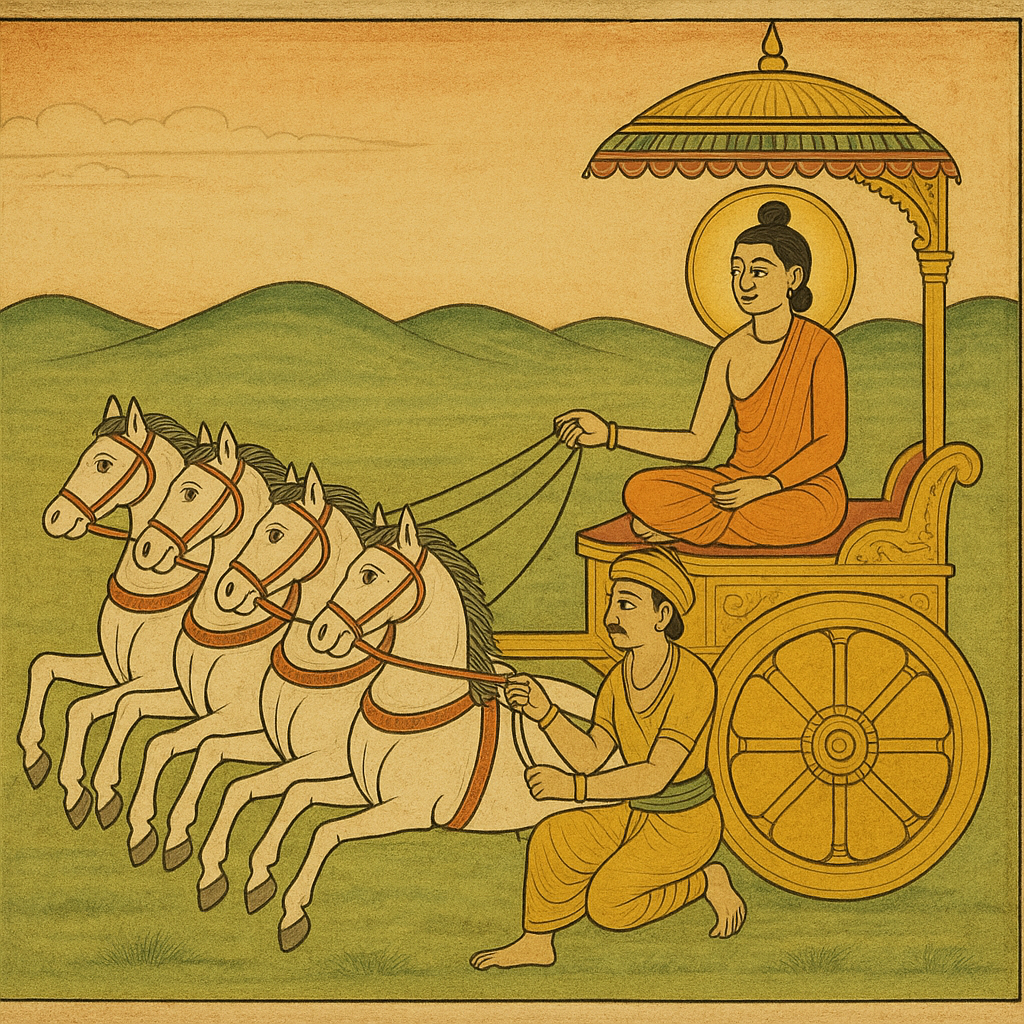 There are moments when an ancient scripture speaks not just to the mind, but to the soul—resonating so deeply that it seems to echo across lifetimes. One such teaching for me has always been the majestic chariot allegory from the Katha Upanishad, where the body is likened to a chariot, the senses to horses, the mind to the reins, the intellect (buddhi) to the charioteer, and the Atman—the Self—as the silent passenger within.